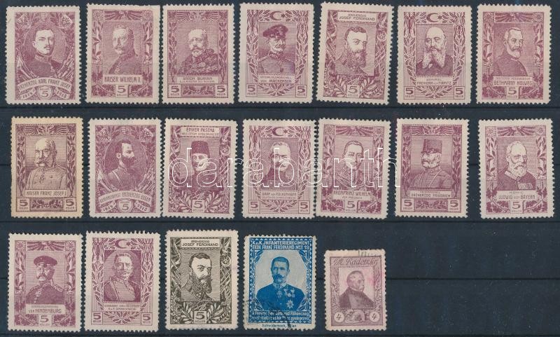 Leírás: I. Világháborús uralkodók és hadvezérek 19 db levélzáró