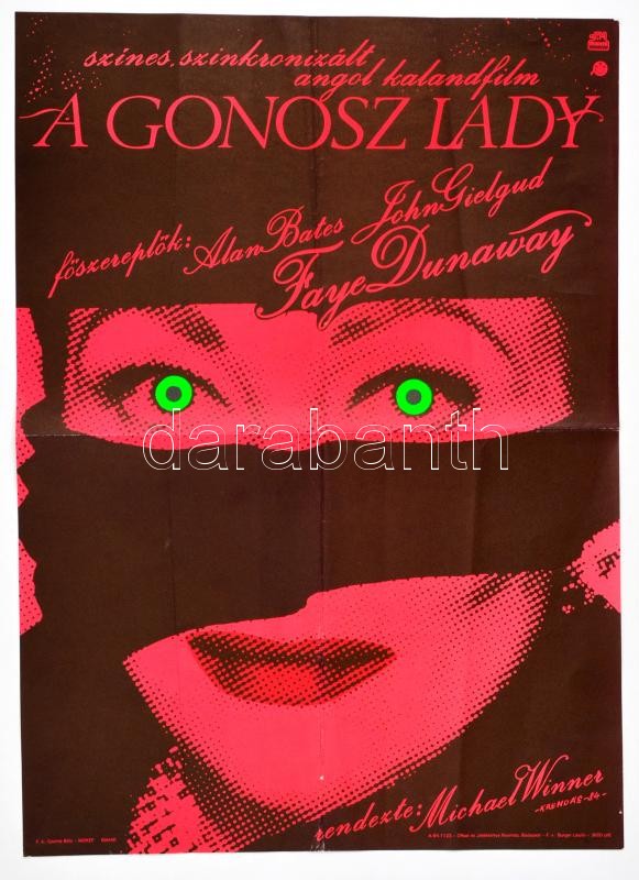 1984 Árendás József (1946-): A gonosz lady, filmplakát, hajtásnyommal,... https://www.darabanth.com/hu/318-Gyorsarveres/318.0/Festmeny-mutargy-papirregiseg-egyeb/Plakat~30/1984-Arendas-Jozsef-1946-A-gonosz-lady-filmplakat-hajtasnyommal-56-5x40-5-cm~II1750885