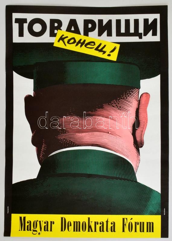1990 Orosz István (1951- ): Tovariscsi konyec! MDF rendszerváltó plaká... https://www.darabanth.com/hu/318-Gyorsarveres/318.0/Festmeny-mutargy-papirregiseg-egyeb/Plakat~30/1990-Orosz-Istvan-1951--Tovariscsi-konyec-MDF-rendszervalto-plakat-67-5C39747-cm~II1750666