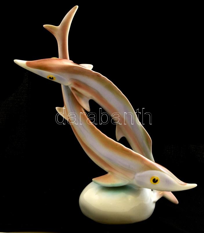 Leírás: Hollóházi vizapár, kézzel festett, jelzett, kis kopásokkal, m: 23 cm