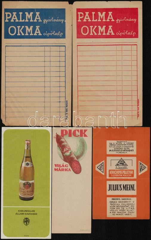 Leírás: 11 db számolócédula (Tungsram, Apenta, József Attila Színház, Meinl, Palma, stb.)