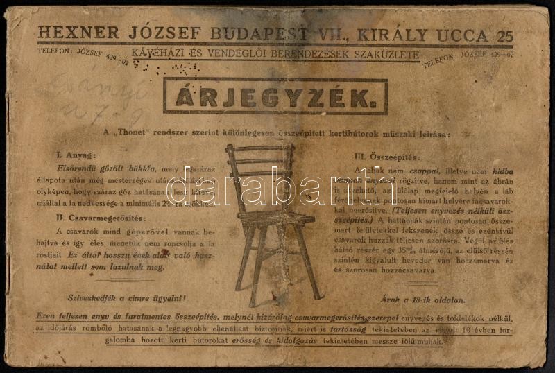 cca 1920-1940 3 db árjegyzék: Lenard Testvérek Szabadka, Gábor Béla Vasbútor Fémárugyár és Vasöntöde Szabadka, Hexner József kávéházi és vendéglői berendezések