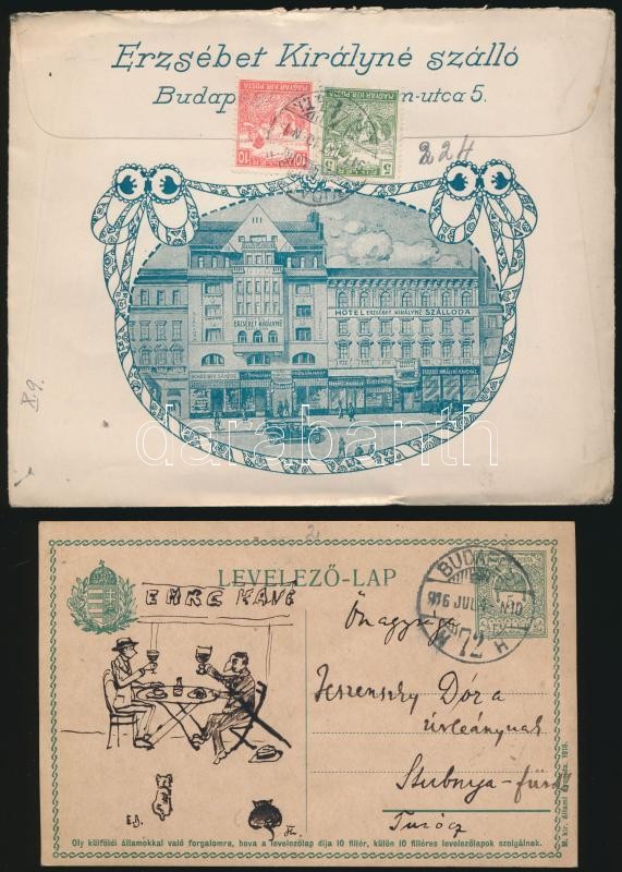 Endrődi Béla (1886-1956): író, újságíró, saját kézzel írt levele, valamint rajzos levelezőlapja kisjeszeni Jeszenszky Dóra, cséri és szentlőrinczi Cséry Miklósnéhoz