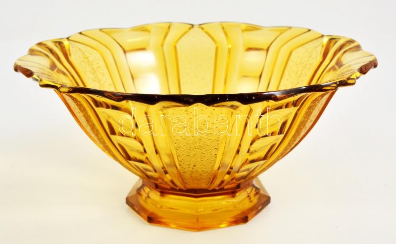 Leírás: Formába öntött art deco stílusú tál, hibátlan, jelzés nélkül, m: 13 cm, d:29 cm