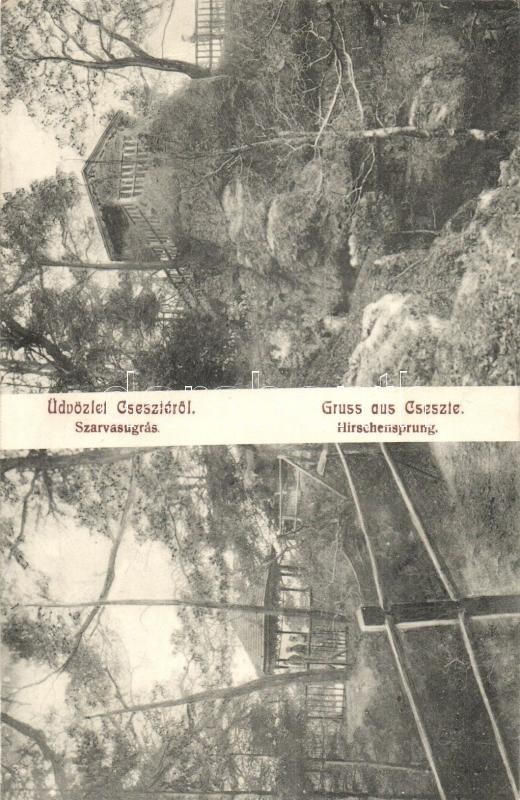 Leírás: Cseszte, Schattmannsdorf, Castá; Szarvasugrás / Hirschensprung (EK)
