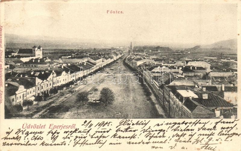 Leírás: Eperjes, Presov; Fő utca. Divald / main street (EK)