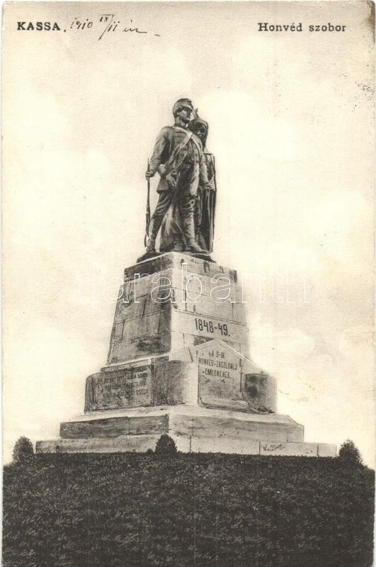 Kassa, Kosice; Honvéd szobor. 1848-49-es magyar szabadságharc honvéd emlékmű. A 9-ik honvéd zászlóalj emlékének. Varga Bertalan kiadása / monument, memorial statue of the Hungarian Revolution in 1848 (EK)