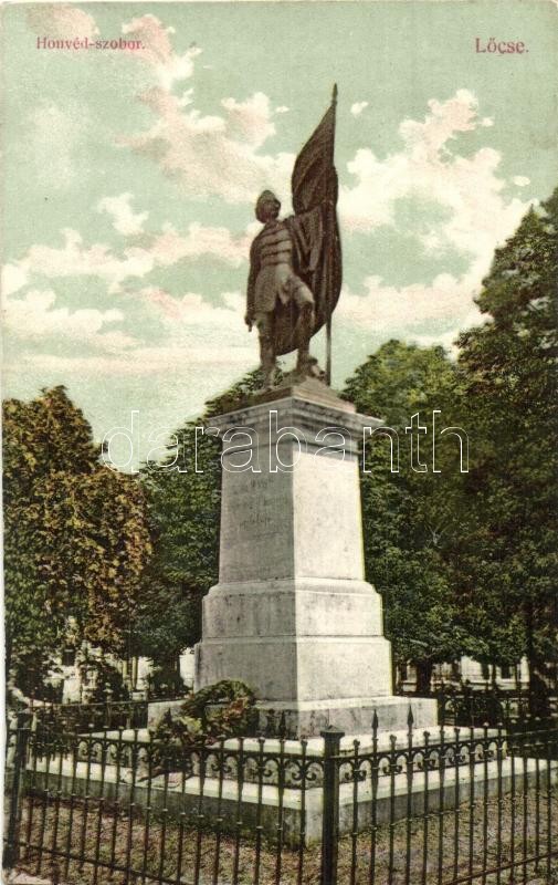 Lőcse, Levoca; Honvéd szobor, az első Felvidéki köztéri szabadságharcos szobor, alkotója Faragó József. Az 1848-49-es magyar szabadságharc és forradalom emlékére / 1848 Heroes' monument, memorial of the Hungarian Revolution in 1848
