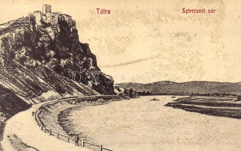 Sztrecsnó, Sztrecsény, Strecno (Tátra); Vár romladék a Vágnál. 60. Kiadja a Felvidéki Magyarság nyomdája Ruttkán / Ruine a.d. Waag / castle ruins by River Váh, Povazie