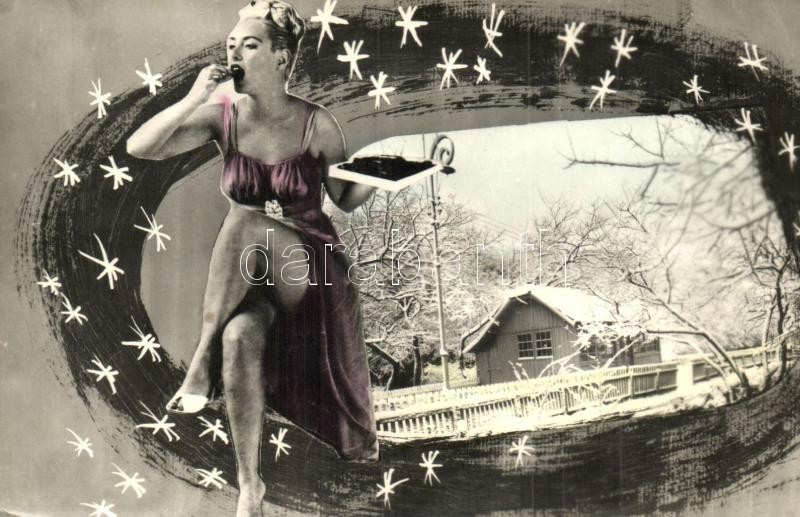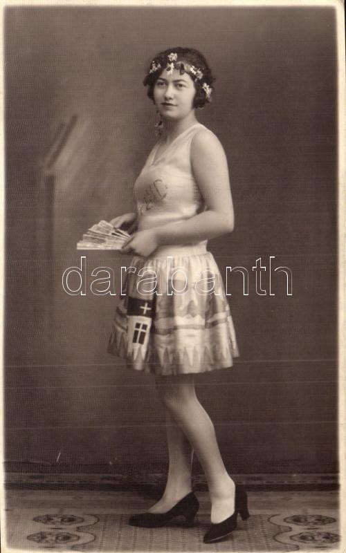 Leírás: 3 db hölgy motívumlap, egy fotó, egy modern / 3 lady motive postcards with one photo and one modern