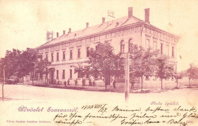 1900 Szarvas, Posta épület. Véver Oszkár kiadása (EK) https://www.darabanth.com/hu/318-Gyorsarveres/318.0/Kepeslapok/Magyarorszag~2500013/1900-Szarvas-Posta-epulet-Vever-Oszkar-kiadasa-EK~II1755120