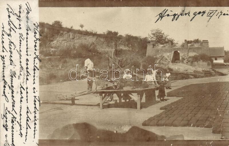 Leírás: 1908 Hőgyész, vályogtégla vető cigányok munka közben. photo