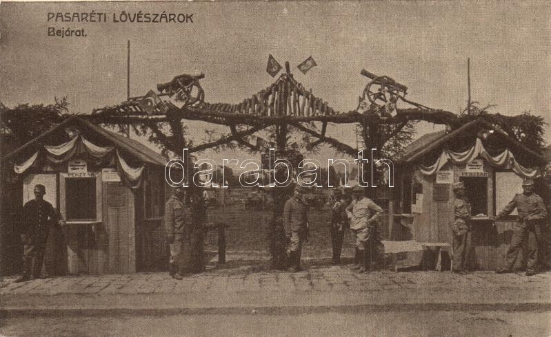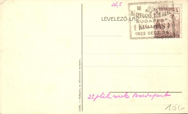Leírás: Budapest II. Pasaréti lövészárok, bejárat, pénztár + II. Bélyeggyűjtők hete Budapest Kiállítás 1923