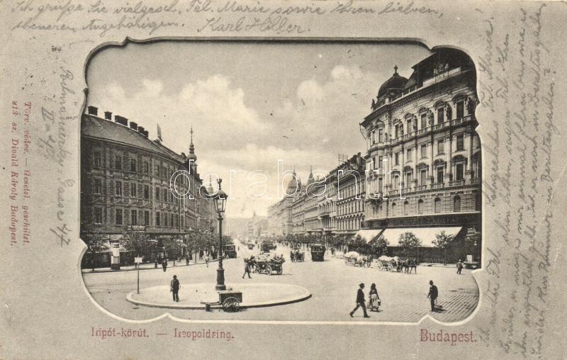 Leírás: Budapest XIII. Lipót körút, Café Vígszínház kávéház, Brück Károly üzlete, villamosok. Divald Károly 213. (EB)