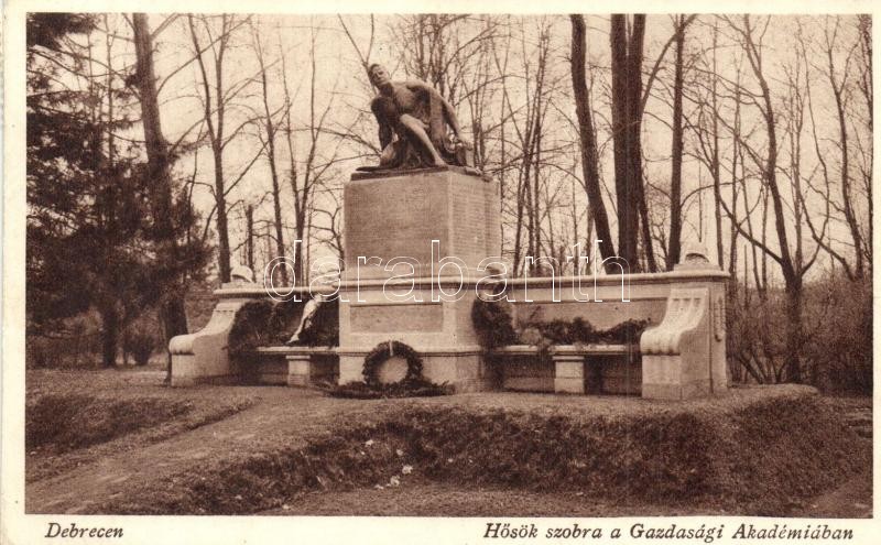 Debrecen, Hősök szobra a Gazdasági Akadémia parkjában https://www.darabanth.com/hu/318-Gyorsarveres/318.0/Kepeslapok/Magyarorszag~2500013/Debrecen-Hosok-szobra-a-Gazdasagi-Akademia-parkjaban~II1752977