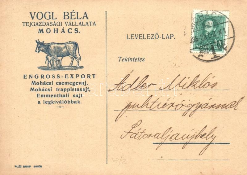 Mohács, Vogl Béla tejgazdasági vállalata, reklámlap https://www.darabanth.com/hu/318-Gyorsarveres/318.0/Kepeslapok/Magyarorszag~2500013/Mohacs-Vogl-Bela-tejgazdasagi-vallalata-reklamlap~II1753262