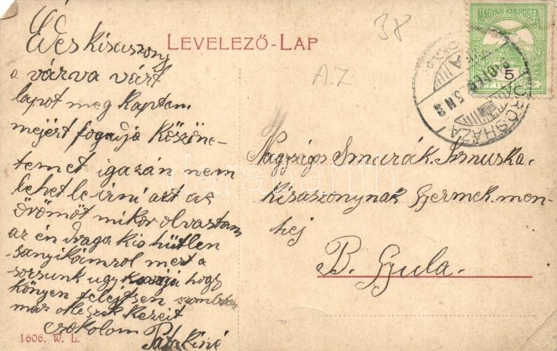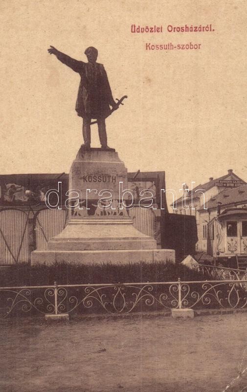 Leírás: Orosháza, Kossuth Lajos szobor, Harsányi Lajos üzlete. W. L. 1606. (kopott sarkak / worn corners)