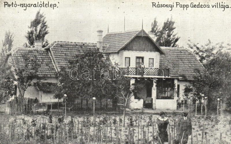Pirtó-nyaralótelep, Rásonyi Papp Gedeon villája, szőlőskert https://www.darabanth.com/hu/318-Gyorsarveres/318.0/Kepeslapok/Magyarorszag~2500013/Pirto-nyaralotelep-Rasonyi-Papp-Gedeon-villaja-szoloskert~II1753550
