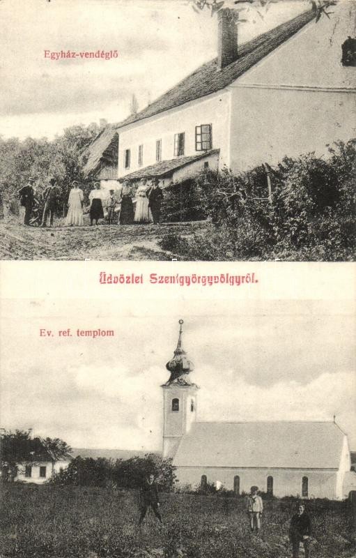 Szentgyörgyvölgy, Egyház vendéglő, Református templom (fl) https://www.darabanth.com/hu/318-Gyorsarveres/318.0/Kepeslapok/Magyarorszag~2500013/Szentgyorgyvolgy-Egyhaz-vendeglo-Reformatus-templom-fl~II1754327