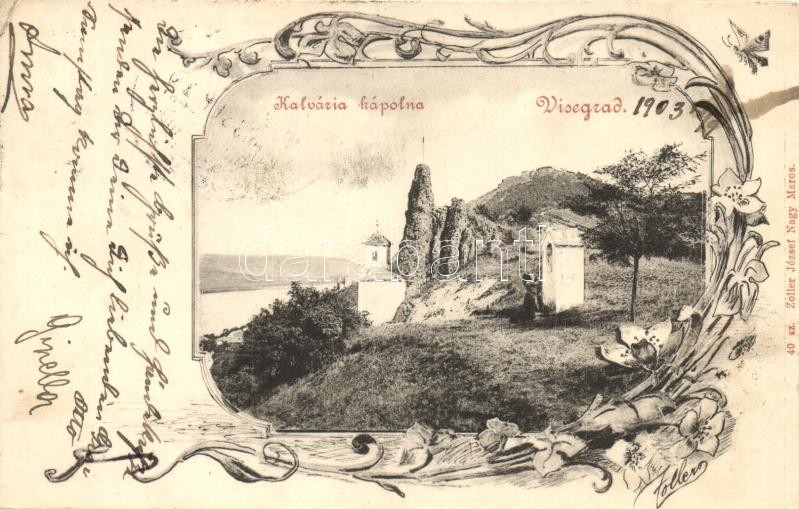 Leírás: Visegrád, Kálvária kápolna. Zoller József kiadása, Floral, Art Nouveau (EK)