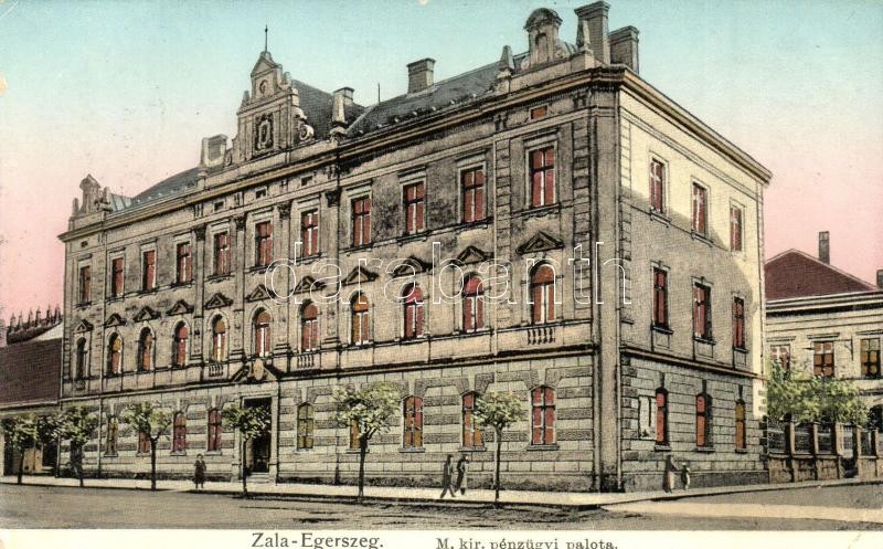 Leírás: Zalaegerszeg, Pénzügyi palota. Arany díszítéssel, kiadja Fülöp János (EK)
