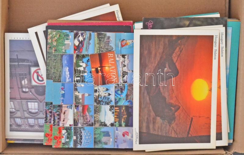 Kb. 1411 db MODERN magyar képeslap dobozban magyar és külföld, motívumok / Cca. 1141 modern Hungarian postcards in box, Hungarian and European, motive cards