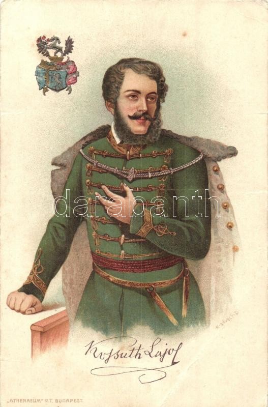 Jelenetek Kossuth Lajos élete történetéből. I. kiadás I. kép. Athenaeum Rt. Kossuth családi címer (Kossuthi és Udvardi) Emb. coat of arms, litho. s: K. Sávely D. (EB)