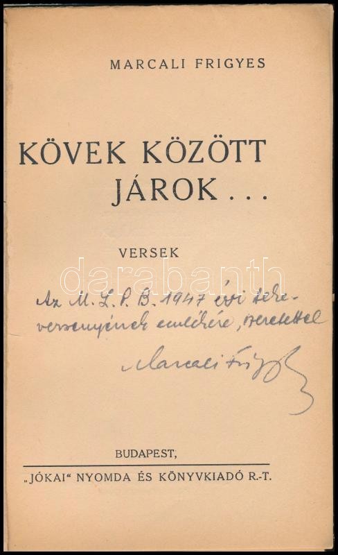 Marcali Frigyes: Kövek között járok... Versek. Bp.,[1936],Jókai Nyomda... https://www.darabanth.com/hu/318-Gyorsarveres/318.0/Konyvek/Konyvek-Egyeb-ritkasagok~1500016/Marcali-Frigyes-Kovek-kozott-jarok-Versek-Bp-1936-Jokai-Nyomda-es-Konyvkiado-Rt-Kia~II1756509