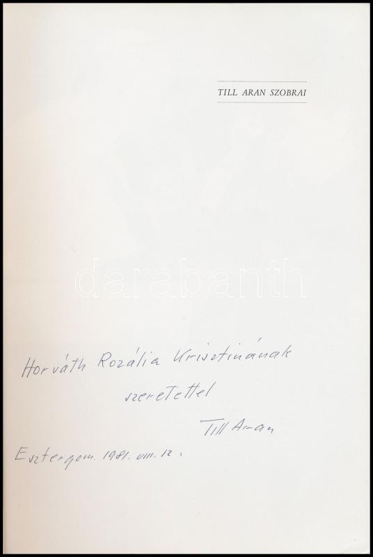 Till Aran szobrai. Róma,1980, Dario e Ugo Detti, 81 p. Fekete-fehér fotókkal illusztrálva. Kiadói papírkötésben. A szobrászművész, Till Aran (1909-1996) által dedikált.