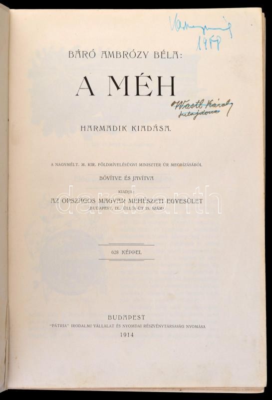 Báró Ambrózy Béla: A méh. 628 képpel. 3. kiadás. Bp., 1914, Pátria. Eg... https://www.darabanth.com/hu/318-Gyorsarveres/318.0/Konyvek/Konyvek-Konyha-es-kert~1500007/Baro-Ambrozy-Bela-A-meh-628-keppel-3-kiadas-Bp-1914-Patria-Egeszvaszon-kotes-h~II1751205