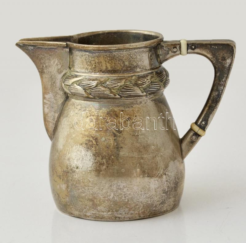 Leírás: 1913 ezüst (Ag.) kiöntő készlet, elefántcsont gyűrűkkel, jelzett, mesterjeggyel (HS), összesen: 4 db, nettó: 1255 g