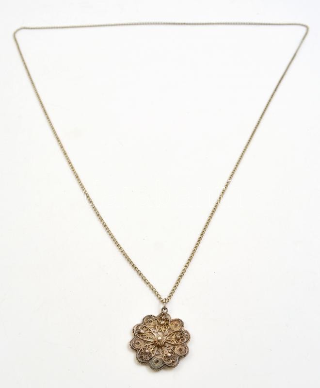 Leírás: Ezüst (Ag) medál fém nyaklánccal, jelzés nélkül, nettó:3 g