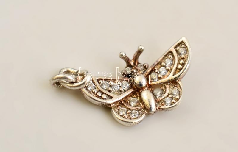 Leírás: Ezüst(Ag) apró kövekkel díszített pillangó függő, jelzett, 2,3x1,1 cm, bruttó: 1,4 g