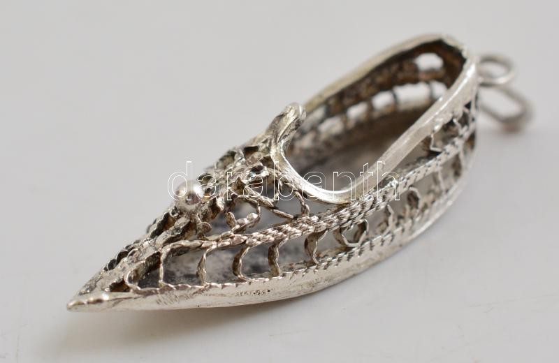 Leírás: Ezüst(Ag) filigrán papucs függő, jelzés nélkül, 3,2x1 cm, nettó: 1,8 g