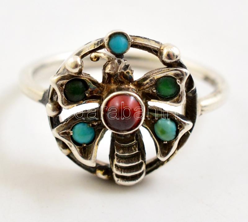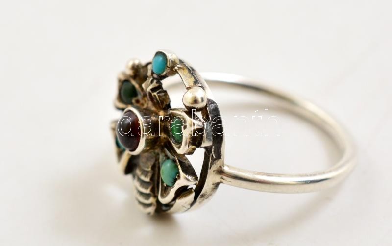 Leírás: Ezüst(Ag) gyűrű türkizzel és gránáttal díszítve, jelzés nélkül, méret: 52, bruttó: 2,9 g