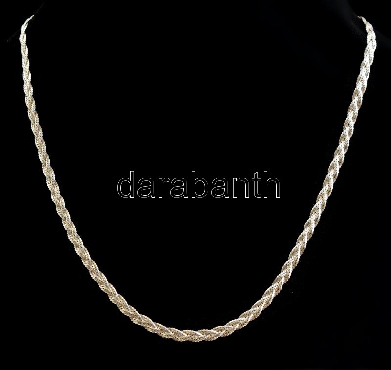 Leírás: Ezüst(Ag) lapos háromszálas fonott nyaklánc, jelzett, h: 42 cm, nettó: 6,5 g