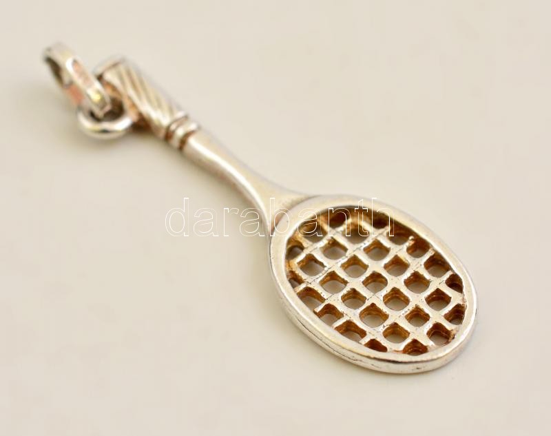 Ezüst(Ag) teniszütő függő, jelzett, 3,5x1 cm, nettó: 1,7 g https://www.darabanth.com/hu/318-Gyorsarveres/318.0/Nemesfem-Disztargyak-Orak-es-Ekszerek/Nemesfem-Disztargyak-Orak-es-Ekszerek~1500017/EzustAg-teniszuto-fuggo-jelzett-3-5x1-cm-netto-1-7-g~II1750149