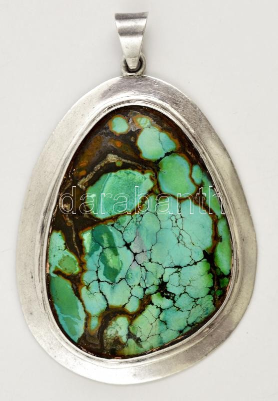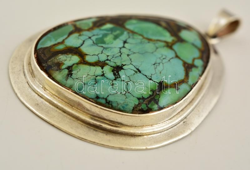 Leírás: Türkizzel díszített ezüst(Ag) medál, jelzett, 7x4,5 cm, bruttó: 29,7 g