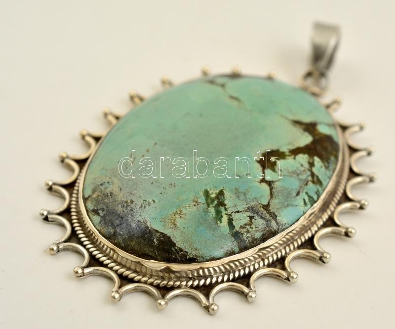 Leírás: Türkizzel díszített ezüst(Ag) medál, jelzett, 7x5 cm, bruttó: 29,5 g
