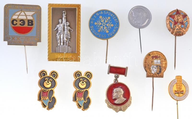 Leírás: 10db-so vegyes magyar és külföldi jelvény és kitűző tétel, közte 1949. "Sztálin" T:1-,2
