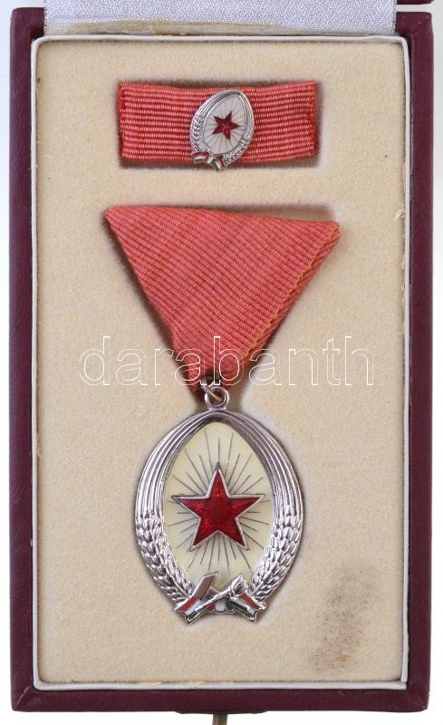Leírás: 1964. "Munka Érdemrend" ezüst fokozata, zománcozott Br kitüntetés miniatűrrel szalagsávon, eredeti tokban T:1-