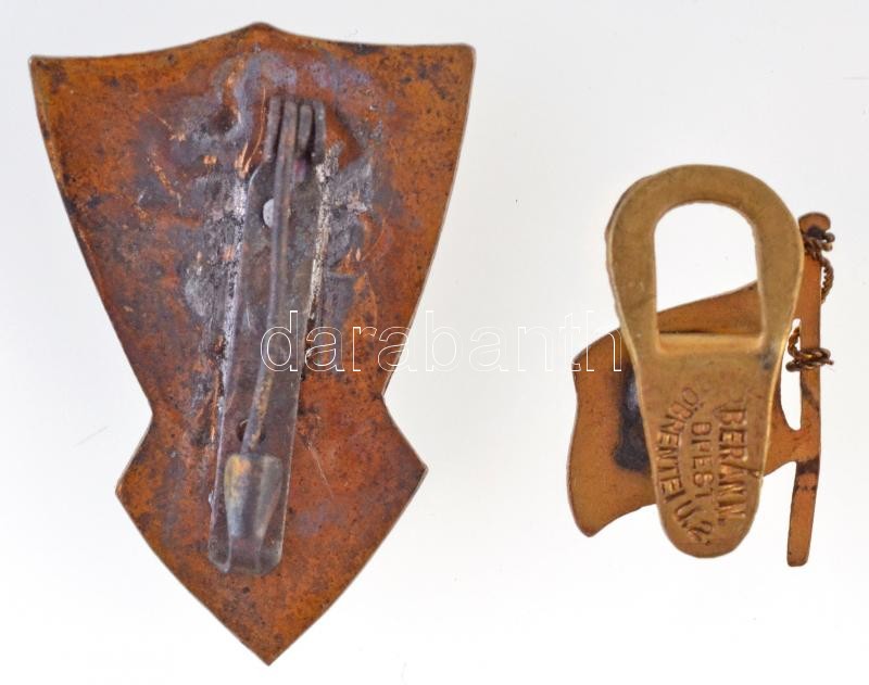 Leírás: 2db klf magyar címeres jelvény, egyik hátoldalán "BERÁN N." gyártói jelzéssel T:2 kis zománchiba