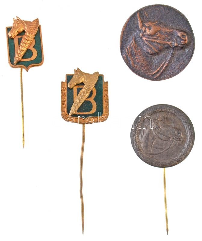 Leírás: 4db vegyes lovas témájú kitűző, közte "Bábolnai Áll. Gazd." zománcozott fém kitűző (17x20mm) T:1-,2