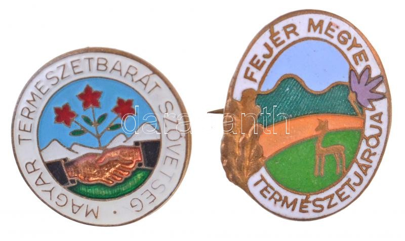 Leírás: DN "Fejért Megye Természetjárója" zománcozott fém jelvény (17x21mm) + "Magyar Természetbarát Szövetség" zománcozott fém jelvény (18mm) T:1-