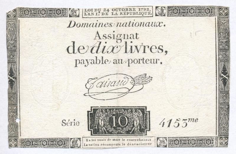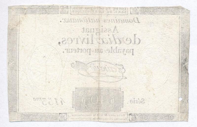 Franciaország 1792. 10L "Assignata" vízjellel és szárazpecséttel T:III- vágott,ly.