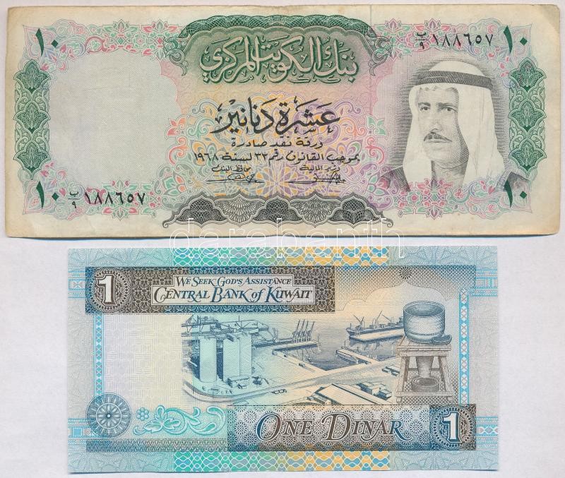 Kuwait 1968. 10 Dinars + 1994. 1... https://www.darabanth.com/hu/318-Gyorsarveres/318.0/Numizmatika/Kulfoldi-bankjegyek~1000011/Kuvait-1968-10D-plus-1994-1D-TIII-I---Kuwait-1968-10-Dinars-plus-1994-1-Dinar-CF-AU--Krause-10-25~II1749103