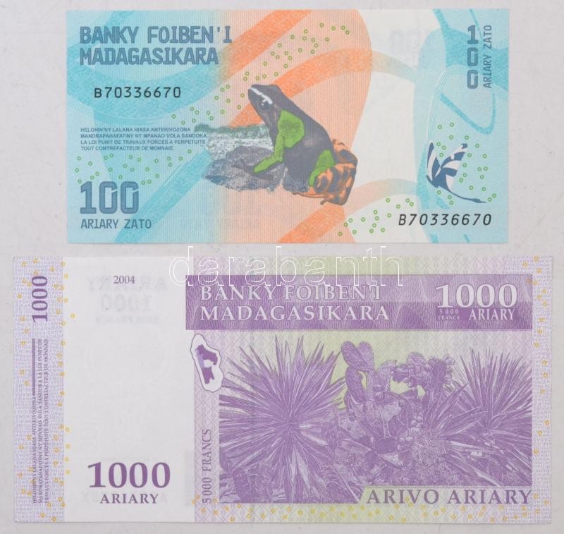 Madagascar 2004. 1000 Ariar... https://www.darabanth.com/hu/318-Gyorsarveres/318.0/Numizmatika/Kulfoldi-bankjegyek~1000011/Madagaszkar-2004-1000A-plus-2017-100A-TI---Madagascar-2004-1000-Ariary-plus-2017-100-Ariary-CAU~II1752007