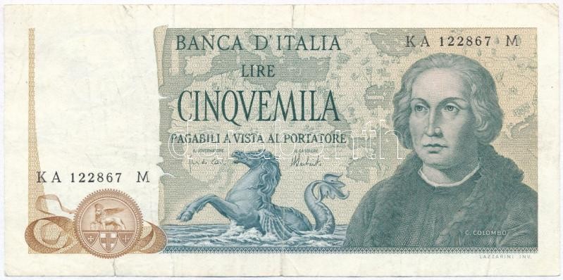Italy 1973. 5000 Lire C... https://www.darabanth.com/hu/318-Gyorsarveres/318.0/Numizmatika/Kulfoldi-bankjegyek~1000011/Olaszorszag-1973-5000L-TIII-III-ragasztott--Italy-1973-5000-Lire-CF-VG-sticked--Krause-102~II1756021