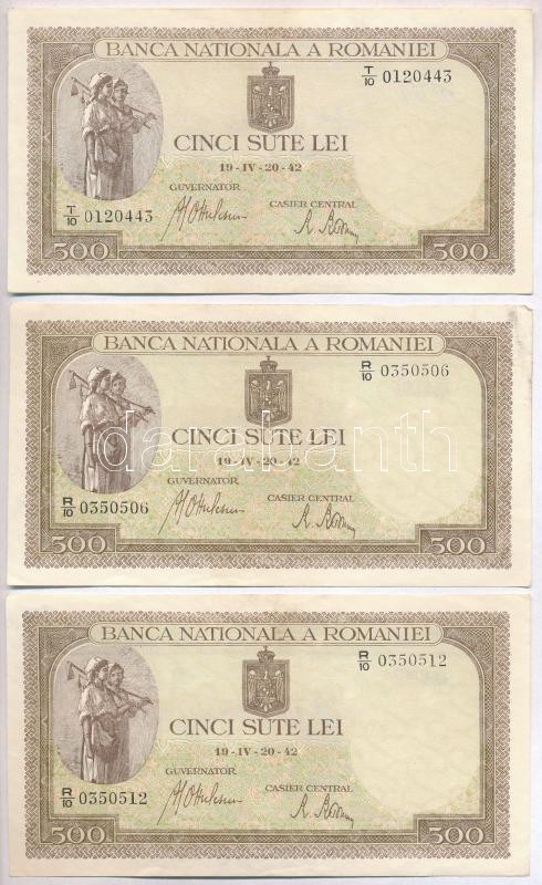 Románia 1942. 500L (3x) közte két közeli sorszám T:II