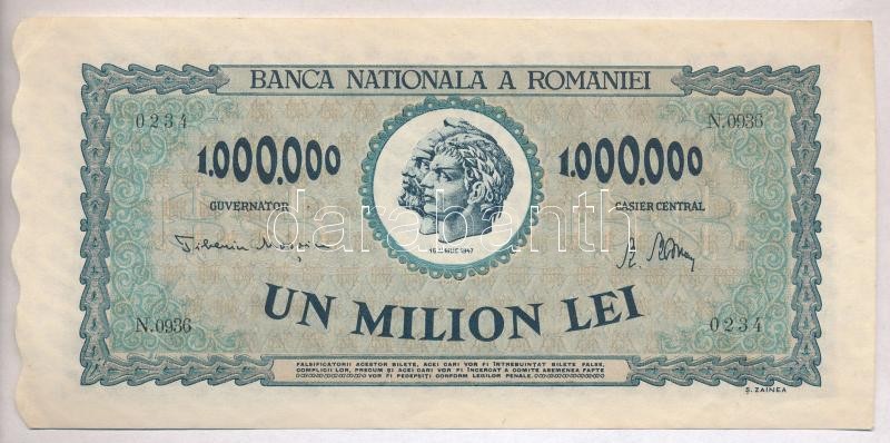 Romania 1947. 1.000.000 L... https://www.darabanth.com/hu/318-Gyorsarveres/318.0/Numizmatika/Kulfoldi-bankjegyek~1000011/Romania-1947-1000000L-TI-sarokhajtasok--Romania-1947-1000000-Lei-CAU-corner-folds~II1755456